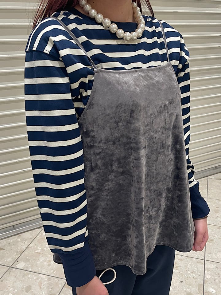〔ONE SIZE〕〈手洗い可能〉スノー クラッシュ ポリエステル ベロア サイド スリット キャミ