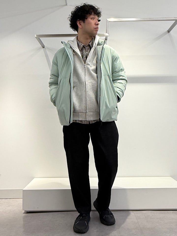 今回はスーパーストレッチダウンジャケットに裏起毛ジップパーカーを合わせました!