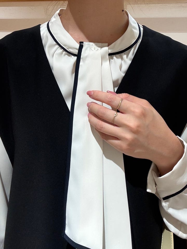 〔ONE SIZE〕SHIPS Colors:〈手洗い可能〉バイカラー トリム ボウタイ ブラウス◇