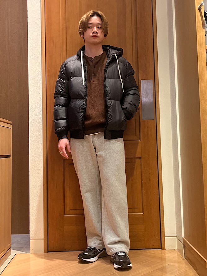 【素材感・着心地】綺麗なシルエットのワイドスウェットパンツ。イージーパンツ仕様で穿きやすい。