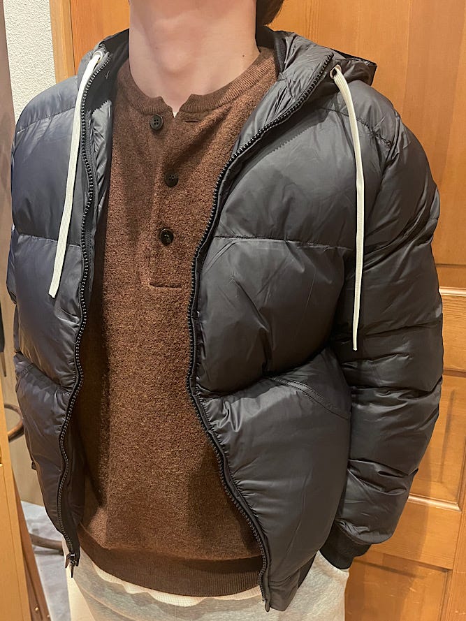 【素材感・着心地】BIG ROCKCANDYのダウンジャケット。軽い着心地でアクティブなシーンでもストレスフリーな1着。