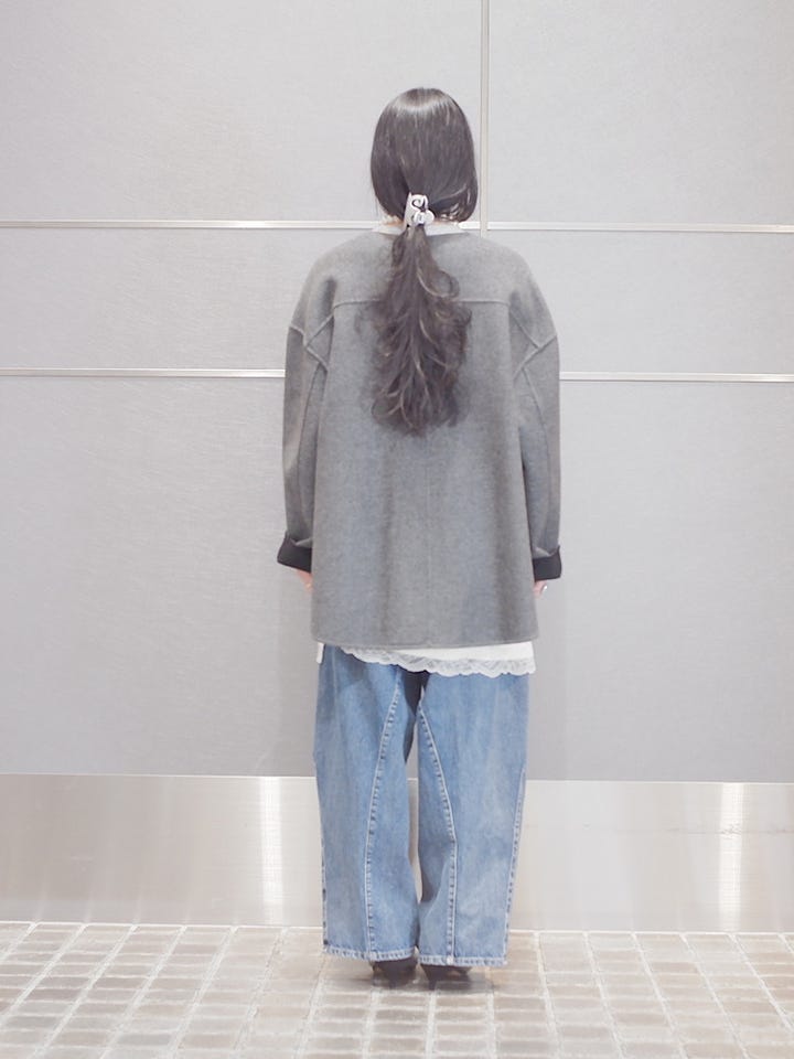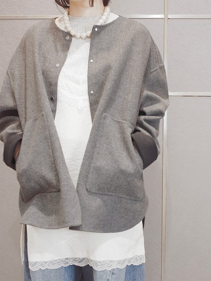 ◆梳毛配色リバーノーカラーコート