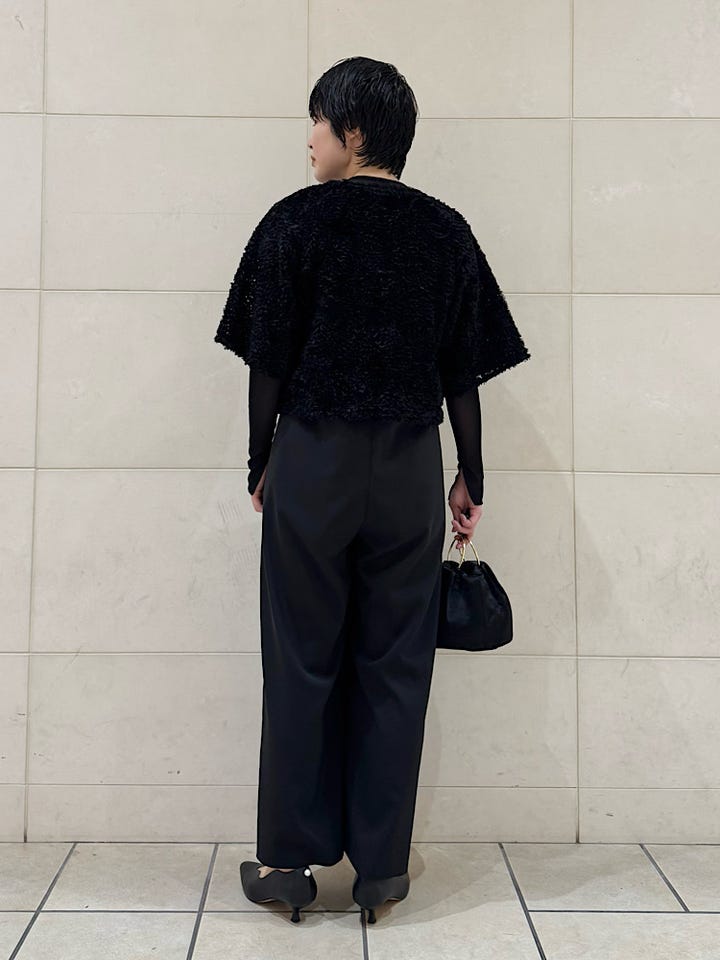 身幅ゆったり、着丈は腰位置くらいの短め丈。