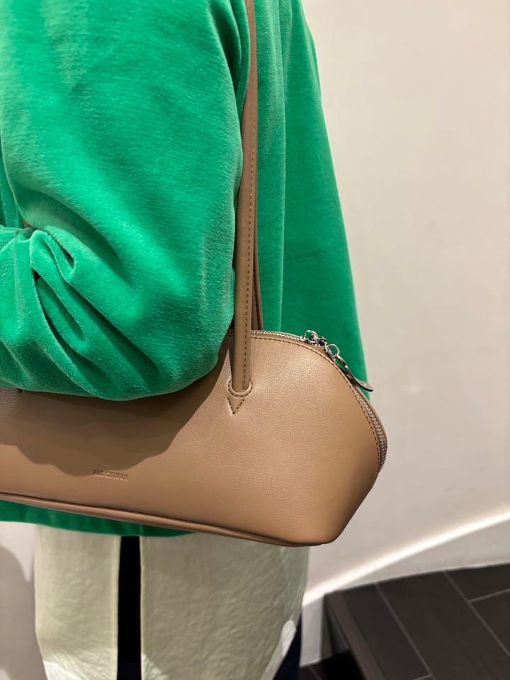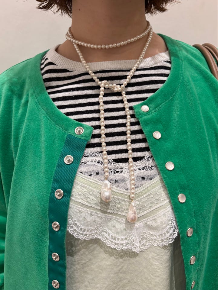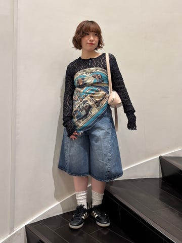 着心地:コンパクトなサイズ感なのでボトムとのバランスが取りやすかったです。ベロア素材でカジュアルになりすぎないのでデニム合わせもおすすめです。