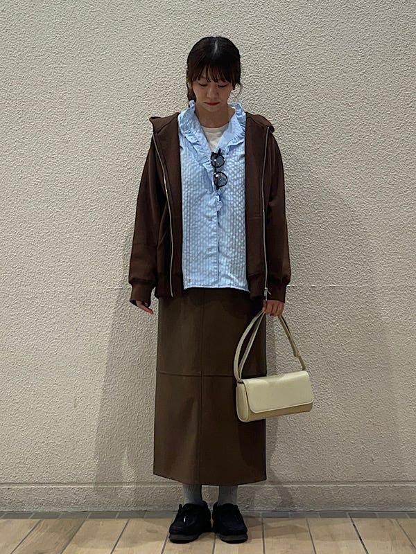 着用アイテム: SHIPS any:〈洗濯機可能〉フリルカラー スタンド & オープン シャツ ブラウス