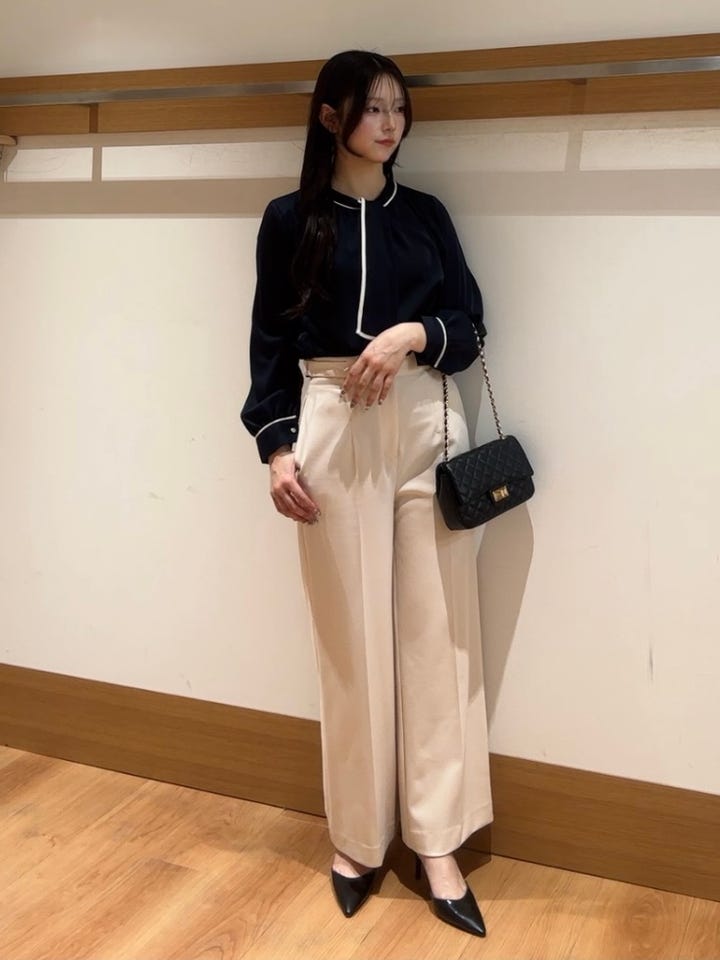 〔ONE SIZE〕SHIPS Colors:〈手洗い可能〉バイカラー トリム ボウタイ ブラウス◇