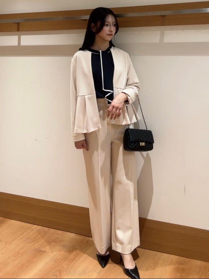 【素材感・着用感】ペプラムデザインがスタイルアップ効果があり程よい女性らしらを見せてくれます。