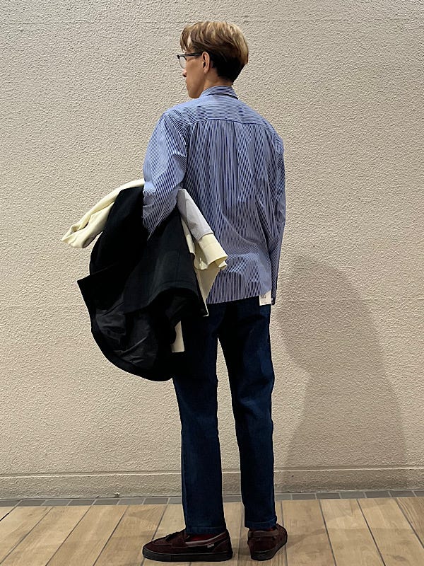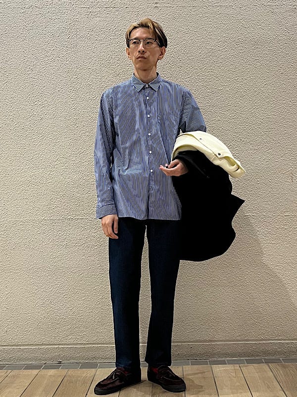 〔LARGE〕SHIPS any: ストライプ / ソリッド リラックス レギュラーカラー シャツ 25AW◇