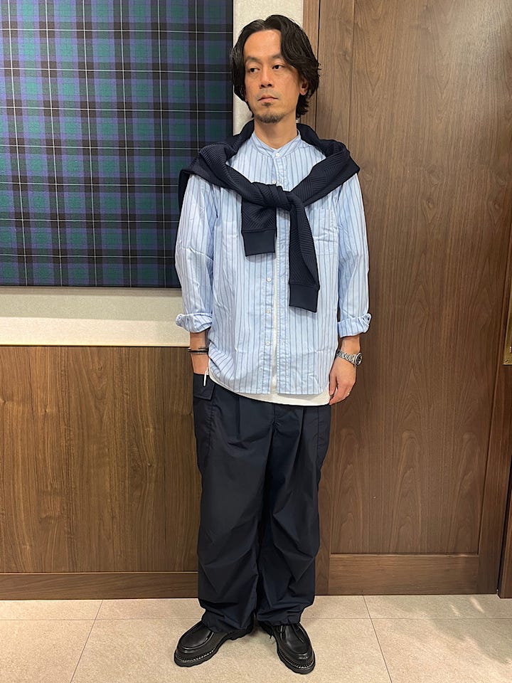 〔LARGE〕SHIPS: バンドカラー ブロード シャツ ロングスリーブ