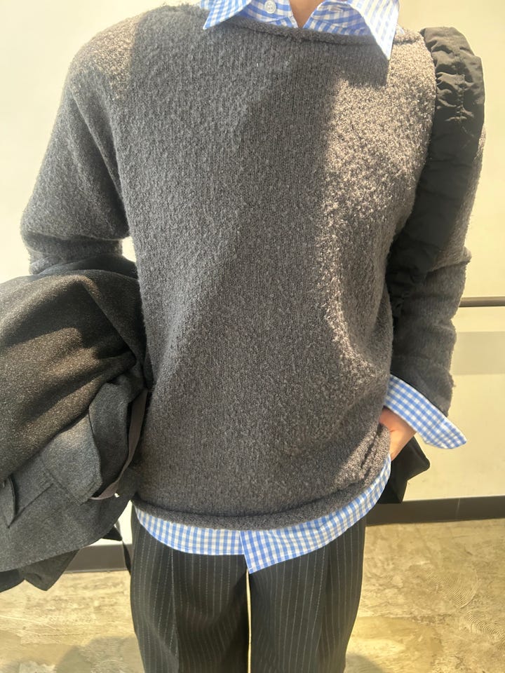 素材感/着心地:ブークレで高級感があり、特有のチクチク感もあまり感じられず着やすい