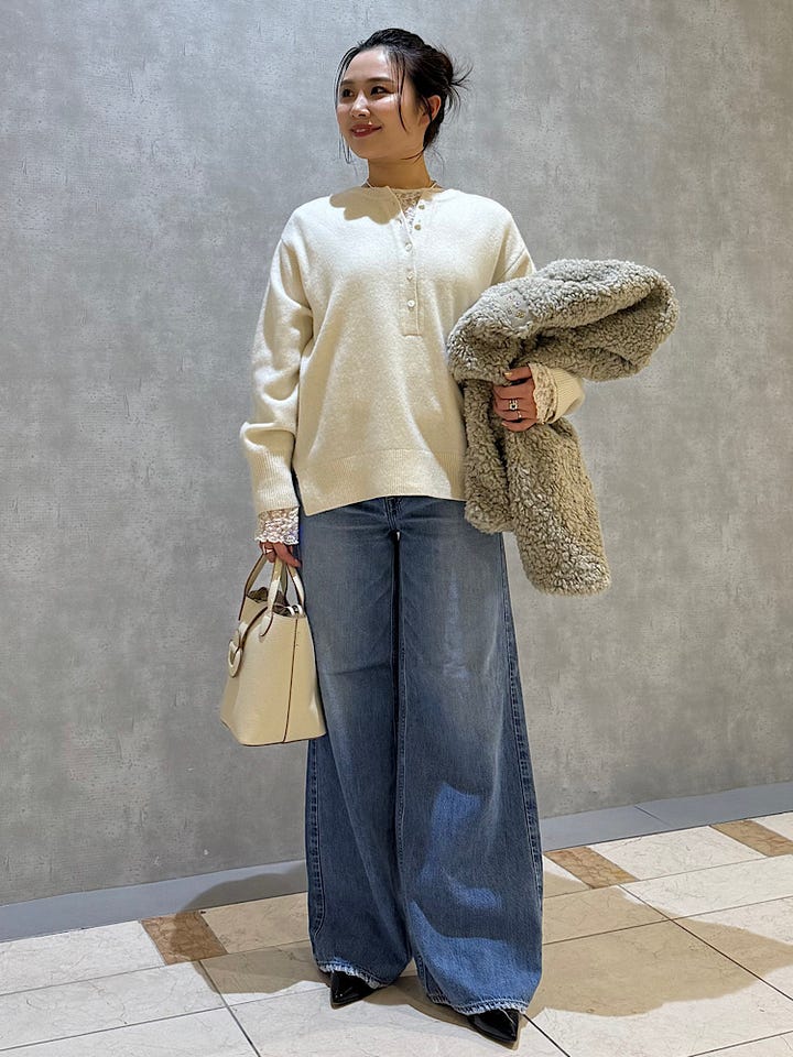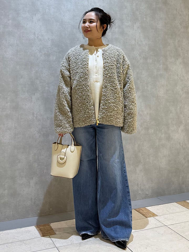 着用感 : 大人気のSHIPS別注TATRASのボアブルゾンです。首元はノーカラーなのでお顔もスッキリ見えます。ハイネックやタートルネックとの相性抜群です。