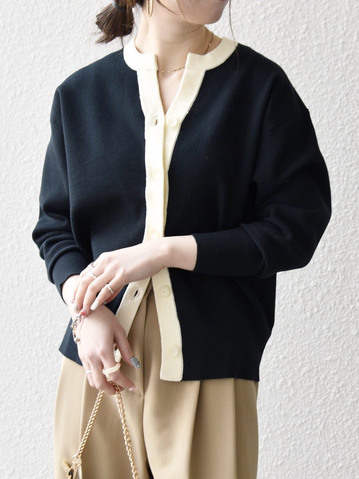 着用アイテム:SHIPS any:〈手洗い可能〉バイカラー スキッパー ニット カーディガン