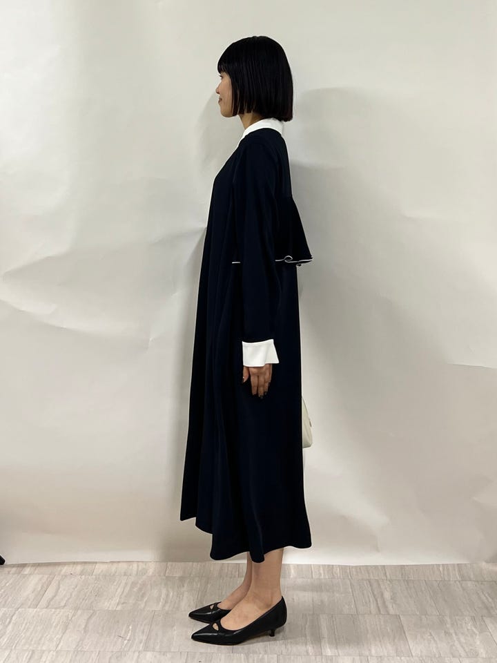 着丈は膝下で、低身長の方でもスッキリ見えます。