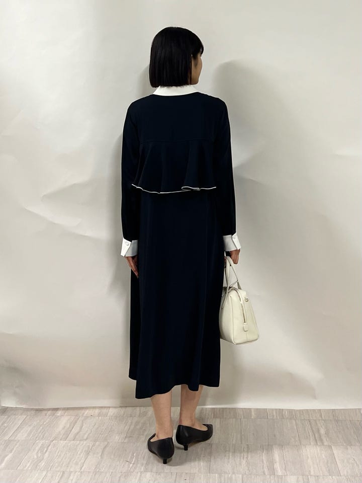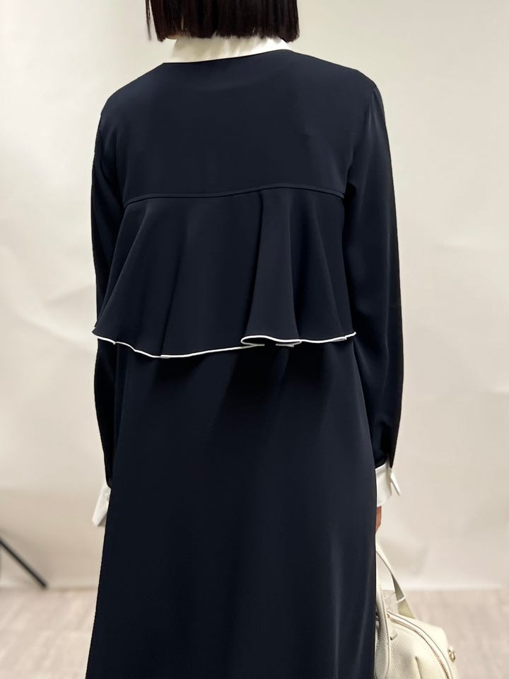 〔ONE SIZE〕〈洗濯機可能〉ライト ダブルクロス バックフリル Aライン ワンピース(セレモニー対応可)