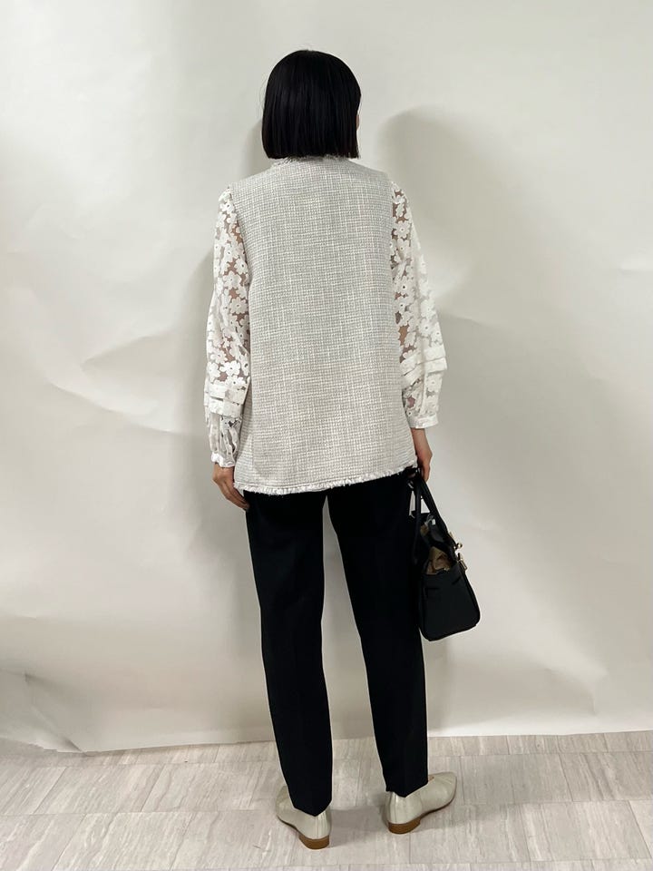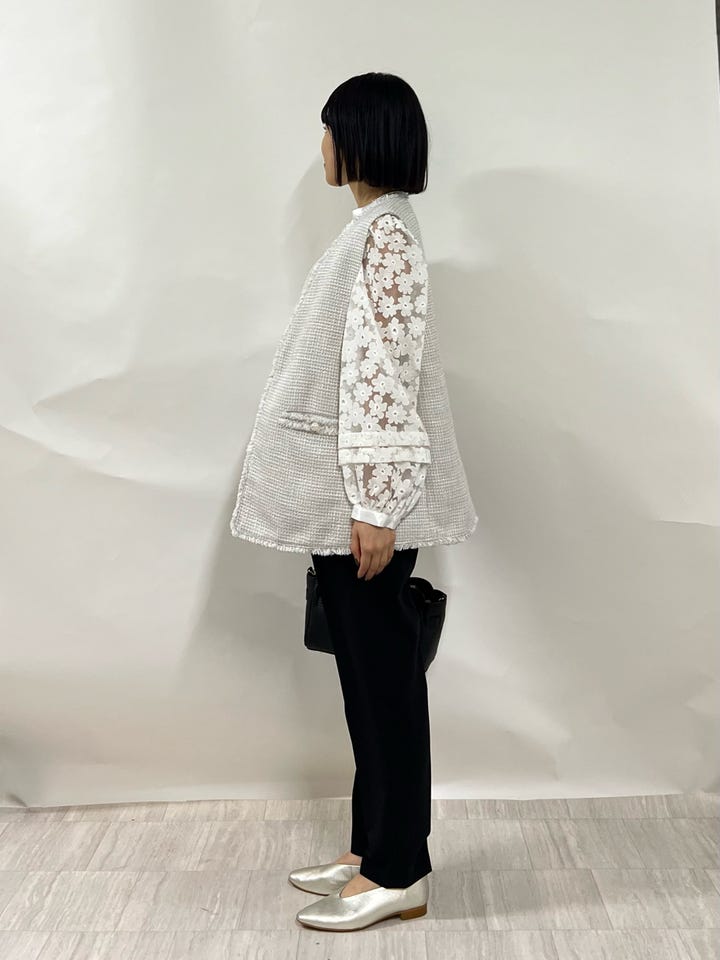 全体的にふわっとボリューム感はありますが、お袖のシアー素材で軽い印象に見せてくれます。