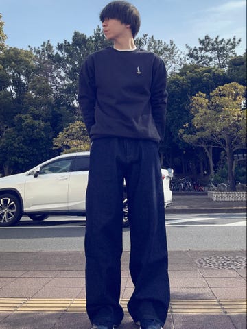着用アイテム:ウォッシュド デニム セミフレア ワイド パンツ