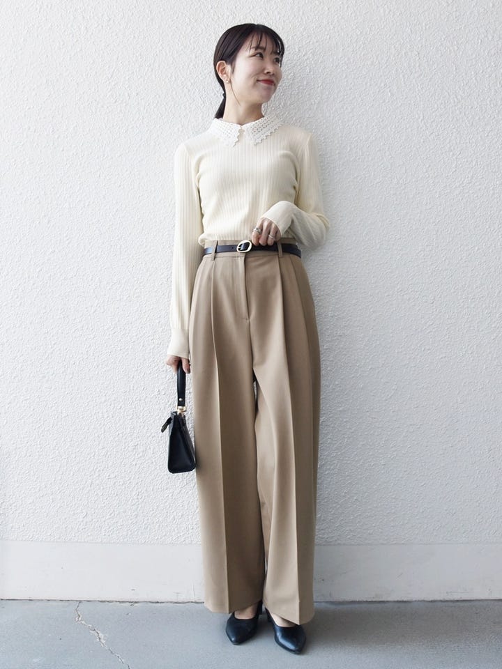 着用アイテム:2WAY レース カラー リブ ニット プルオーバー ナチュラル