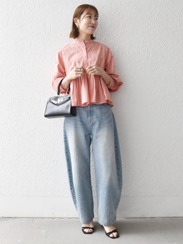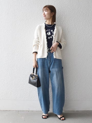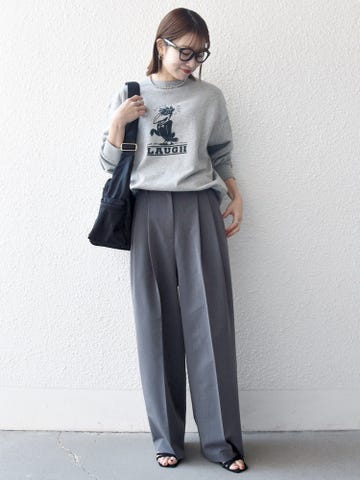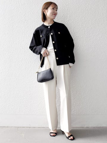 タックパンツと合わせてすっきりと甘さを抑えたスタイリングに◎