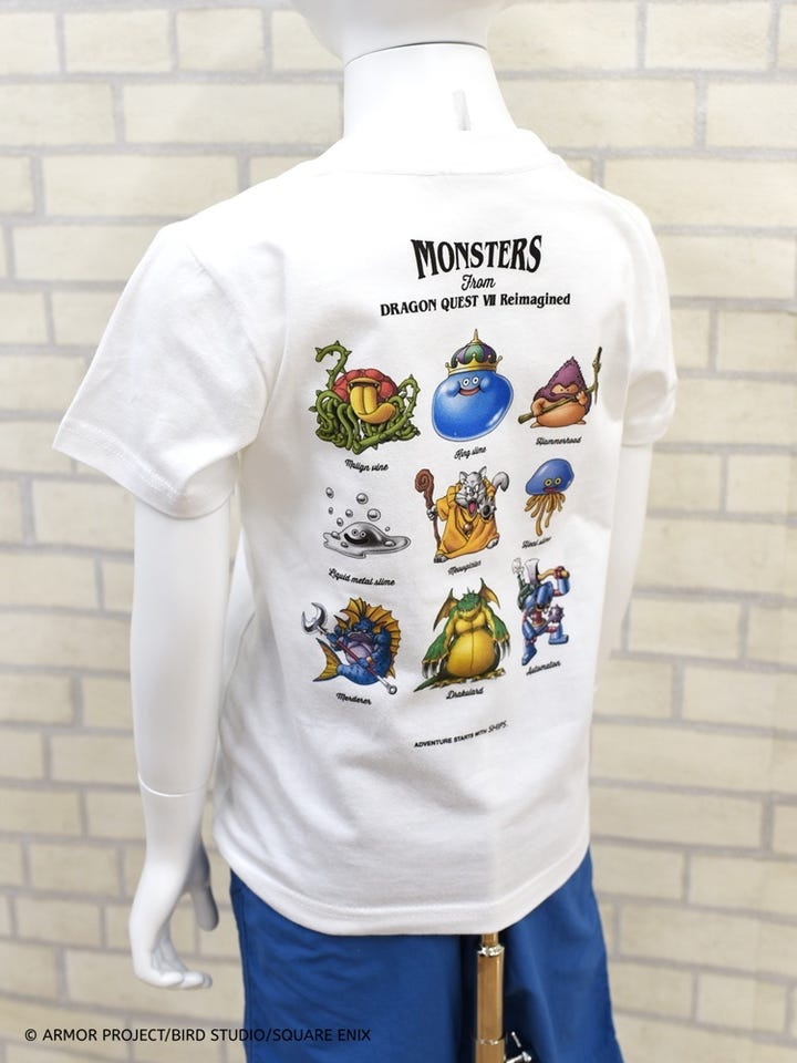 フロントには”DQ7R”のロゴ、バッグにはモンスターたちが描かれた遊び心満載のTシャツ。