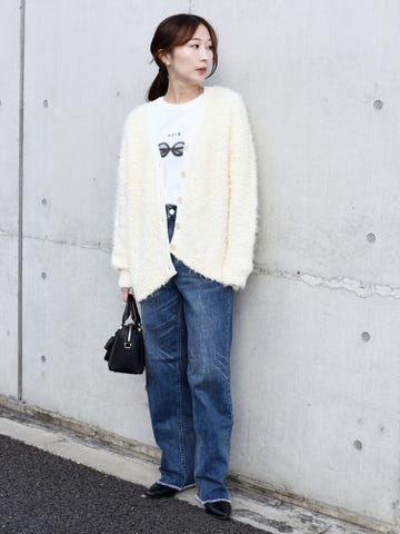 サイズ感:身幅や袖周りはゆったりとしています。着丈は腰あたりで、すっきりとしています。首元は程よく詰まっていて、鎖骨が隠れます。