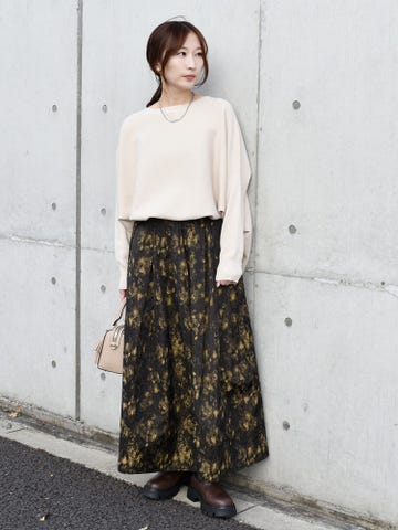 サイズ感:着丈は足首のあたり。ウエストはニットを前だけインしましたが、まだ余裕がありました。私の身長では、36サイズでも良さそうです。