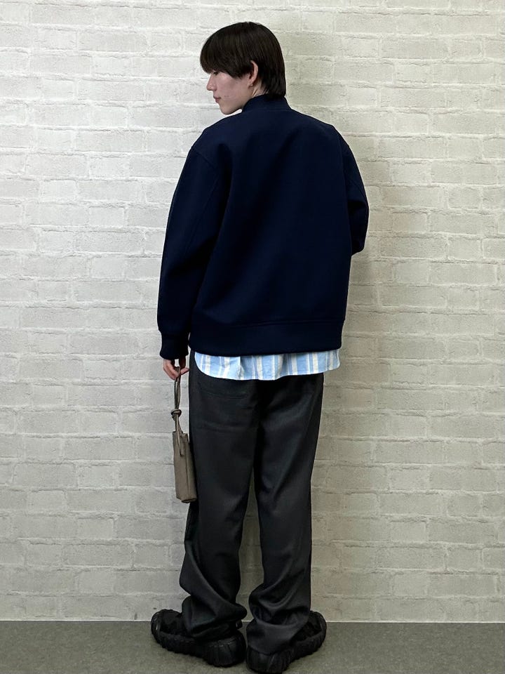 ゆったりとしたシルエットなので、ワイドパンツと合わせるのがオススメです。