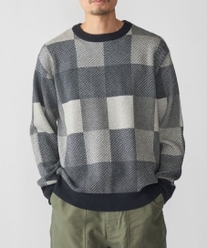 〔MEDIUM〕SHIPS: 〈洗濯機可能〉チェック コットンカシミヤ クルーネック