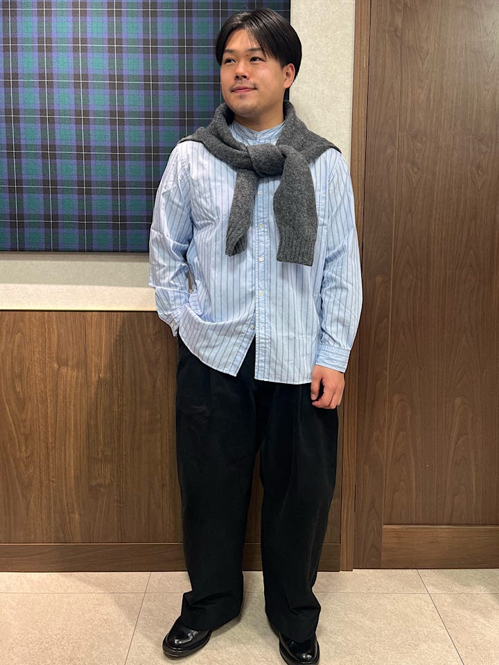 〔LARGE〕SHIPS: バンドカラー ブロード シャツ ロングスリーブ