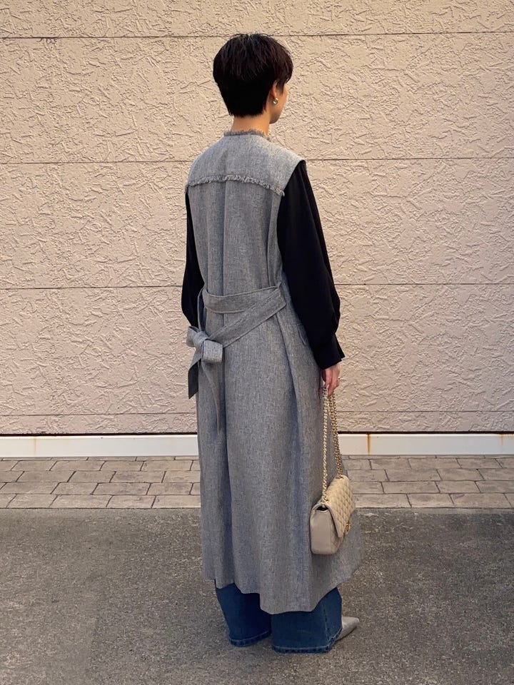 フラットシューズでも着用できる着丈。