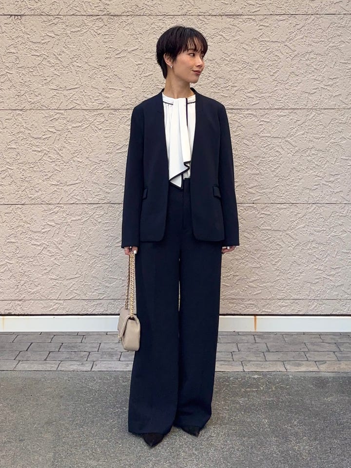 〔SMALL〕SHIPS Colors:ストレッチ ジョーゼット Vカラージャケット3 (セットアップ対応可能)◇