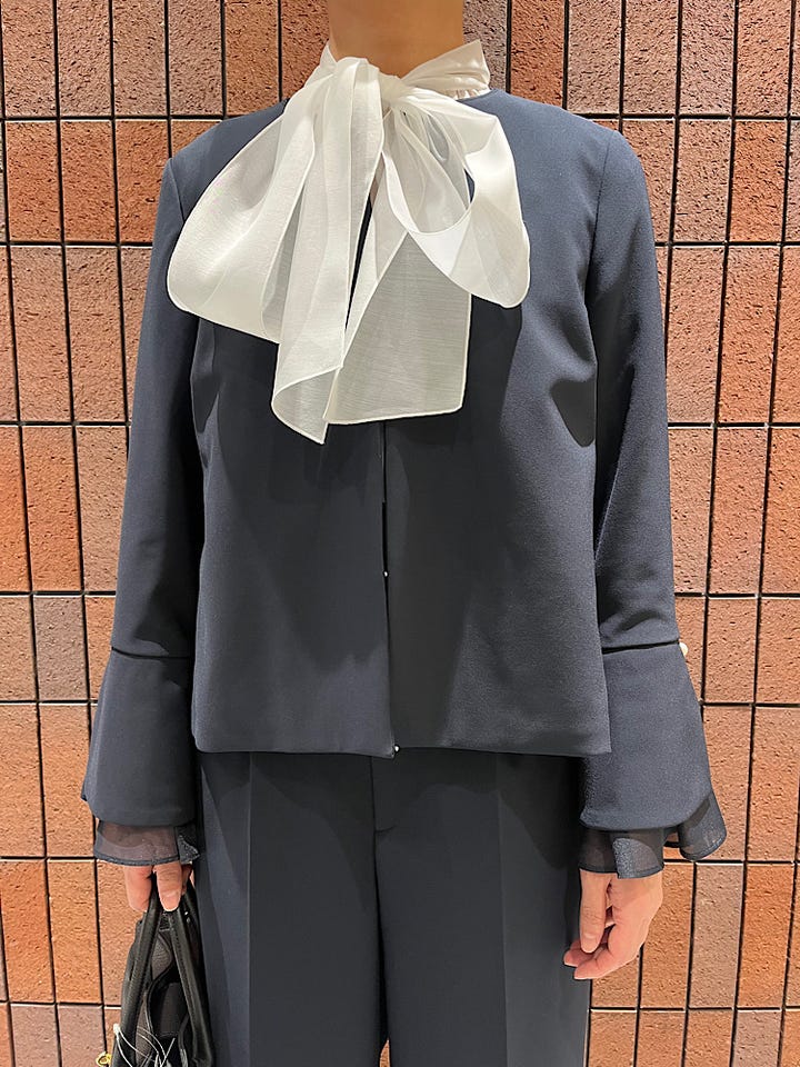 〔38〕ダブル クロス 重ね袖 ノーカラー ジャケット(セレモニー対応可)