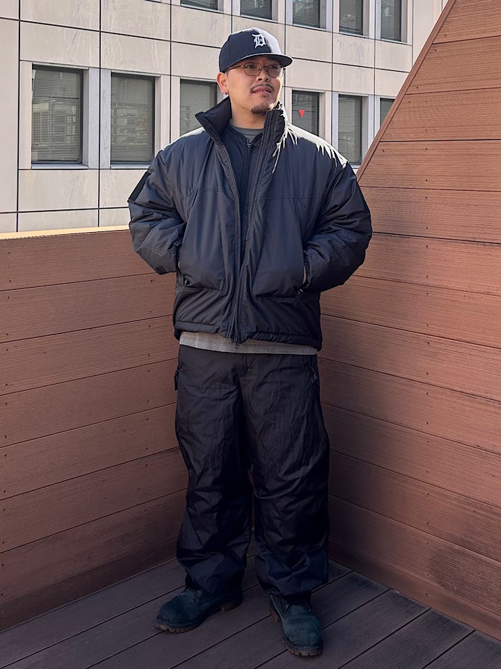 素材感・着心地:通常のパンツの上からでも履くことができるくらいのゆとりがあるが、ダボついた印象にはならない。ドローコードが付いており、レングスの調整が可能。