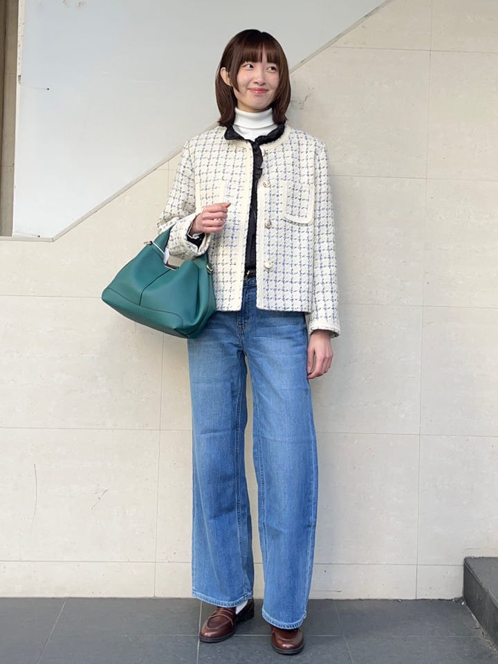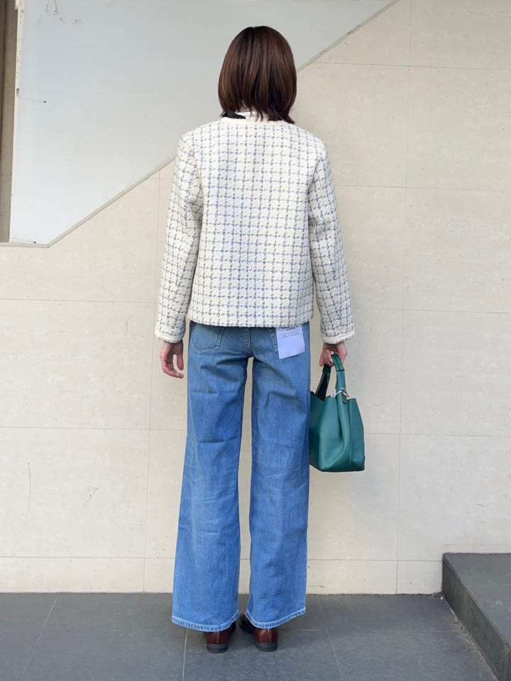 生地は厚みがありながら、柔らかさもあって、程よいサイズ感ですごく上品で合わせやすいツイードジャケットです。