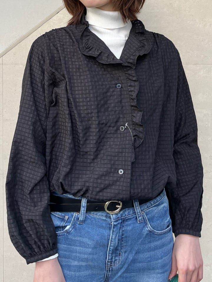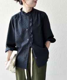 〔ONE SIZE〕SHIPS any:〈洗濯機可能〉フリルカラー スタンド & オープン シャツ ブラウス