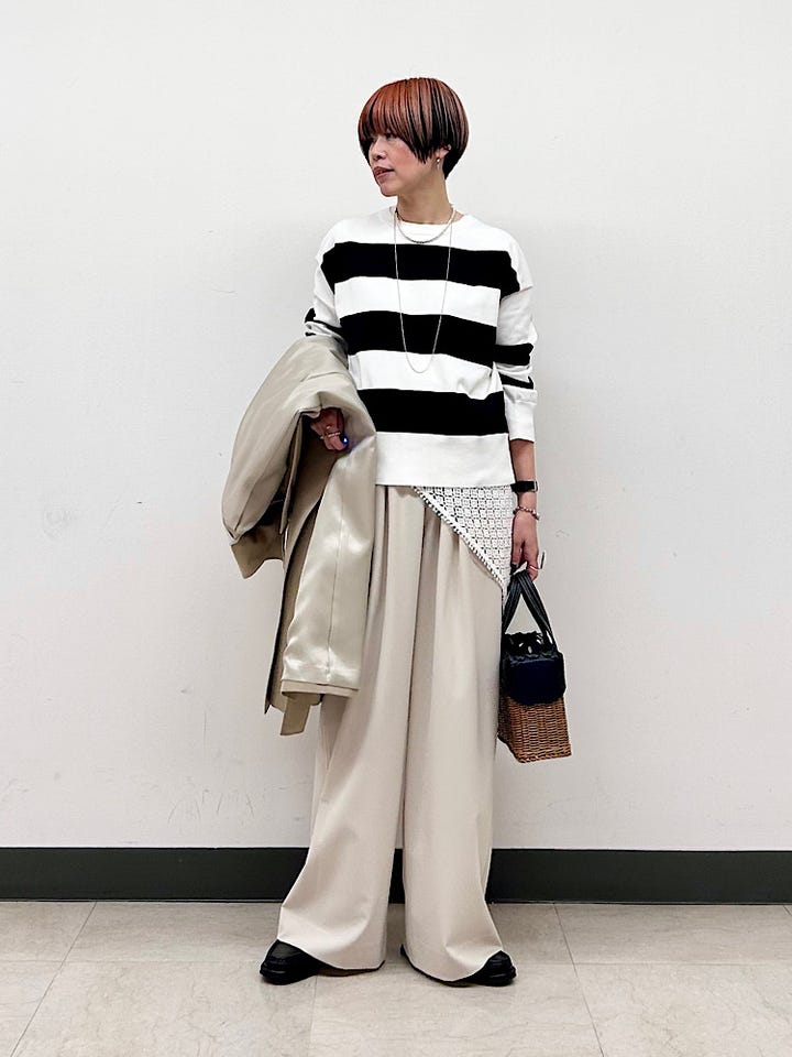 着心地:薄手で軽く、伸縮性もあるので、とても楽に着られました。淡い色のインナーであれば響きにくいので、さほど透け感も気にせずに着られます。さらりとした肌触りで、シーズンレスで楽しむことができる素材です。
