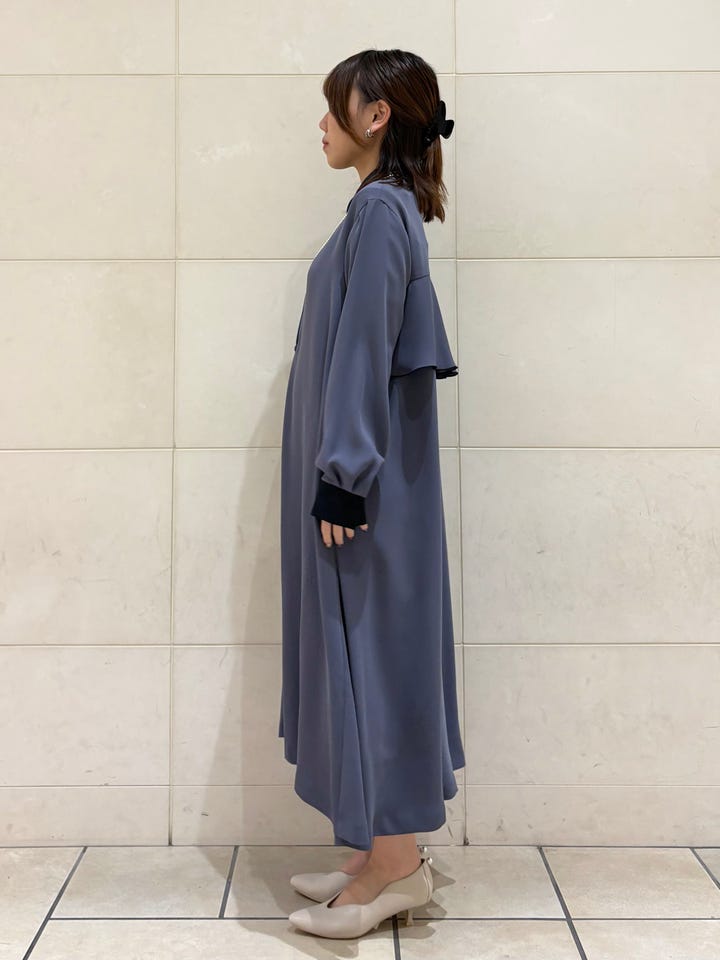 さらっとした生地で光沢感があります。シンプルめですがバックフリルで程よくデザイン性もあり、1枚で決まるワンピースです。