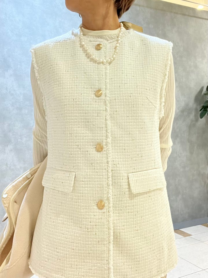 〔ONE SIZE〕ランダム ラメ ノーカラー ボックス ジレ(セレモニー対応可)