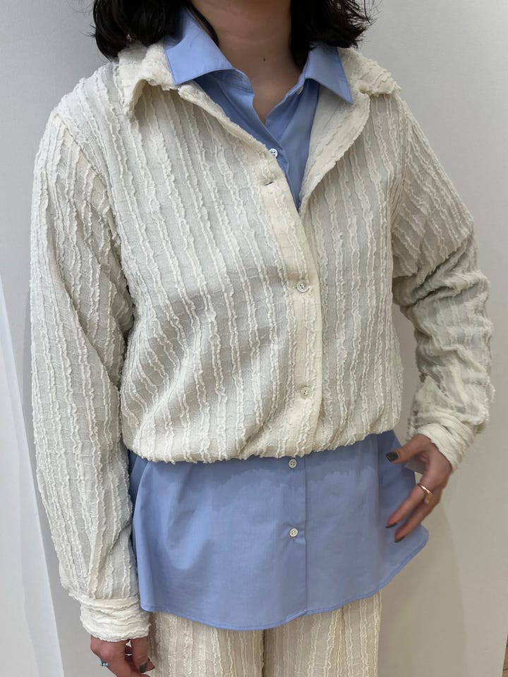 〔ONE SIZE〕SHIPS any:〈洗濯機可能〉ウェーブ ジャカード ドロスト シャツ