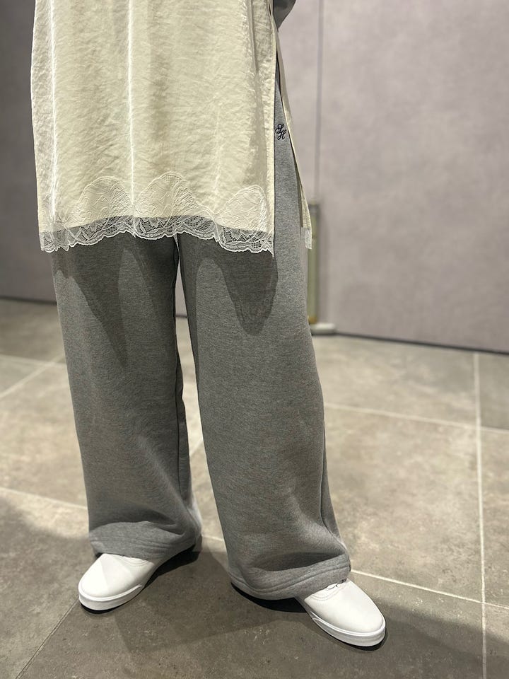 素材感・着心地:少し厚みのあるスウェット素材ですが軽くてもちもちして着心地が良いです。ウエストドロストコード入りでトップスに合わせて調整いただけます。
