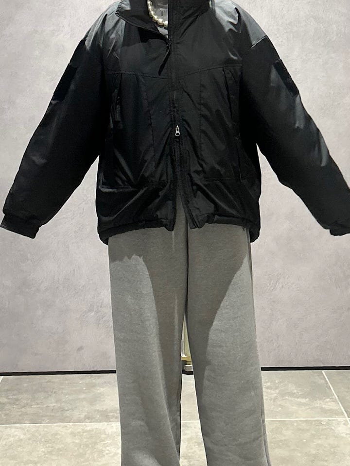 素材感・着心地:少し厚みのあるスウェット素材ですが軽くてもちもちして着心地が良いです。ウエストドロストコード入りでトップスに合わせて調整いただけます。
