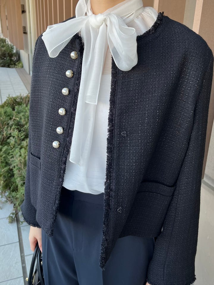 〔38〕《一部追加予約》トライスピン 杢 ツイード パール モチーフ ボタン ジャケット(セレモニー対応可)