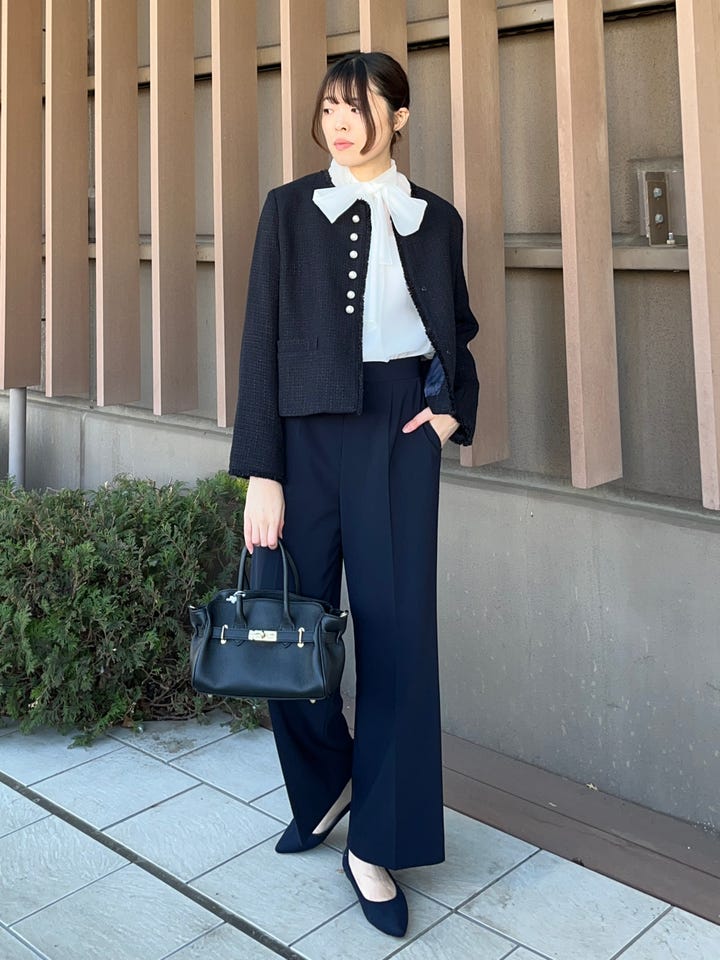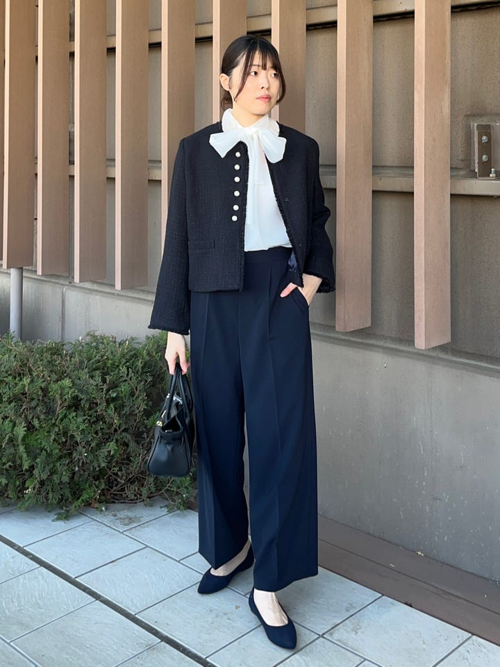 着心地:セミワイドでゆとりがあります。着回しのしやすいセレモニー対応パンツ。