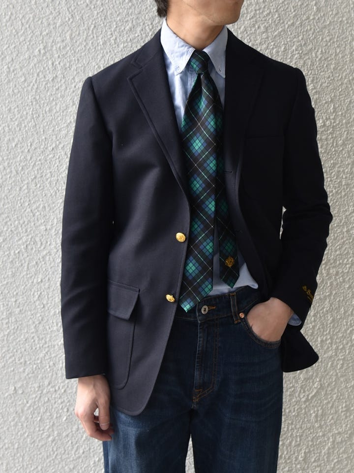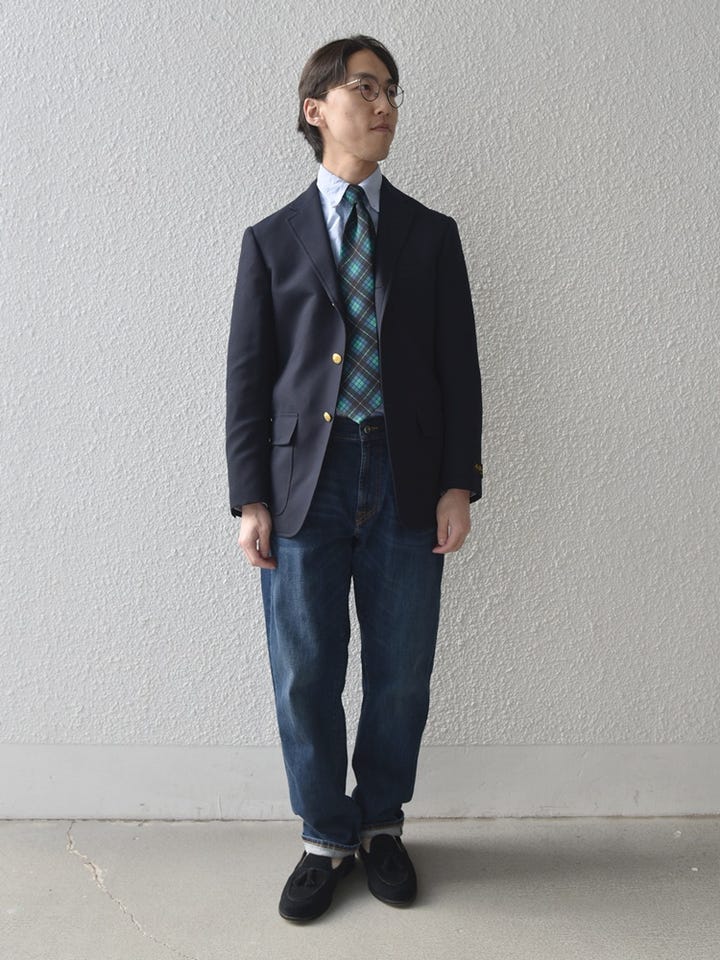 Southwickのアメリカ製ブレザーを軸に、YCHAIのウォッシュドデニムを使用。