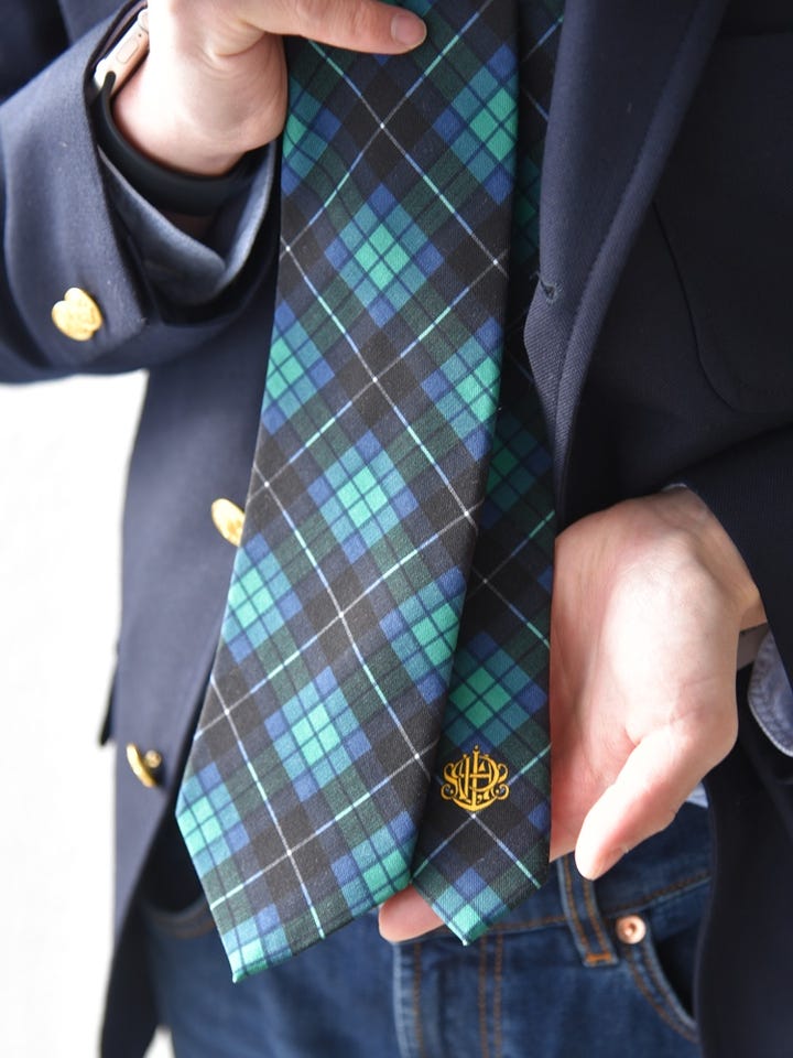 〔ONE SIZE〕【SHIPS別注】Stefano Cau: 50th ANNIV タータン エンブレム ネクタイ