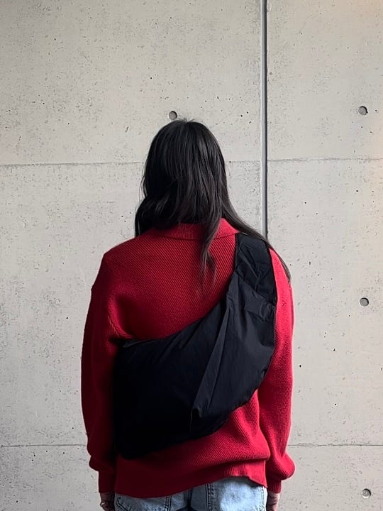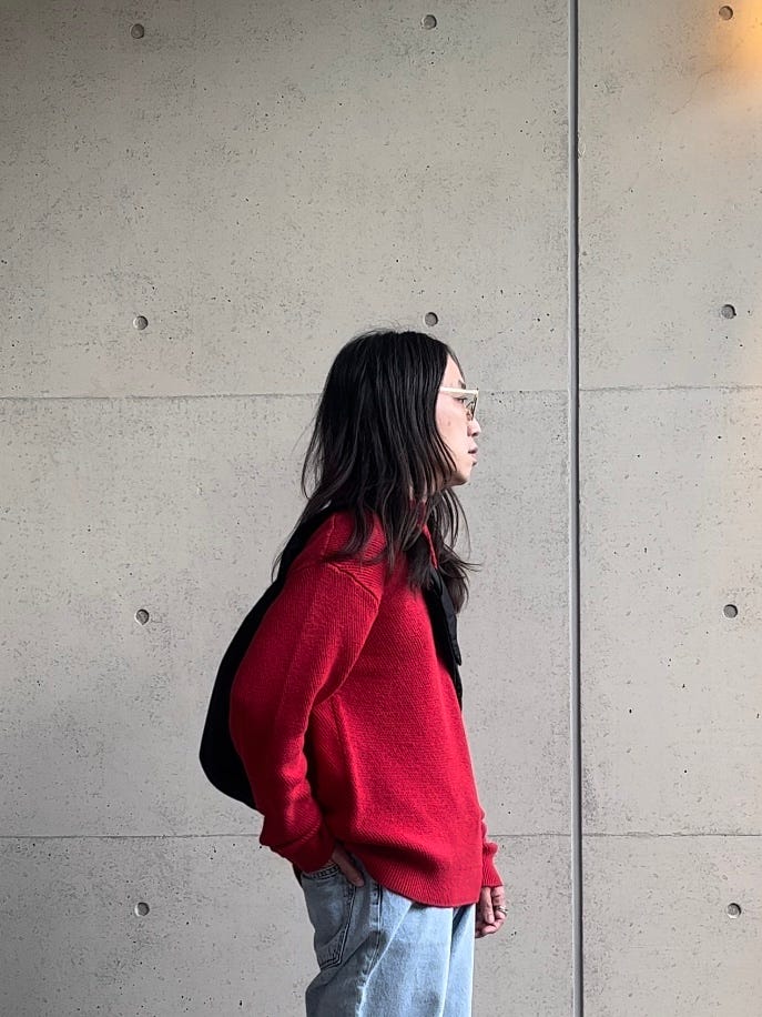 ちょっとしたお出掛けやお買い物など重宝し易いコーデ提案です。ニットはウール見えするポリエステル素材を使用。肌触りも良く、丸洗い出来ます。バッグは沢山入るので、幅広いく活躍してくれます。参考にいかがでしょうか。