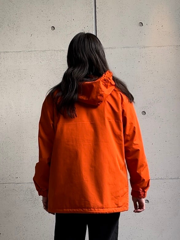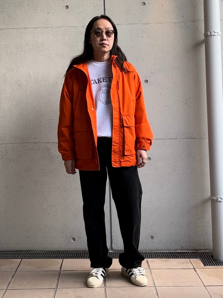 レジャーやお出掛けなどに着て欲しいコーディネート提案です。ジャケットは裏地が起毛してあるので、薄くて暖かいジャケット。あまり重ね着したく無い方におすすめのジャケットです。オレンジがポイントになっています。参考にいかがですか。