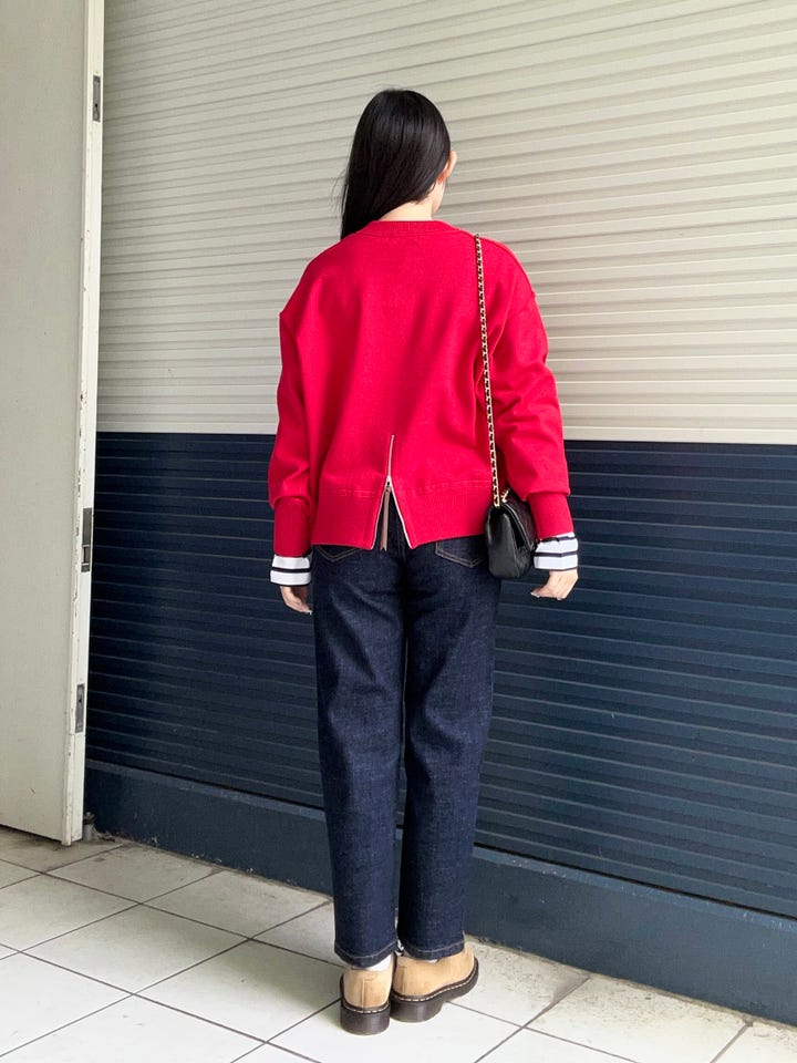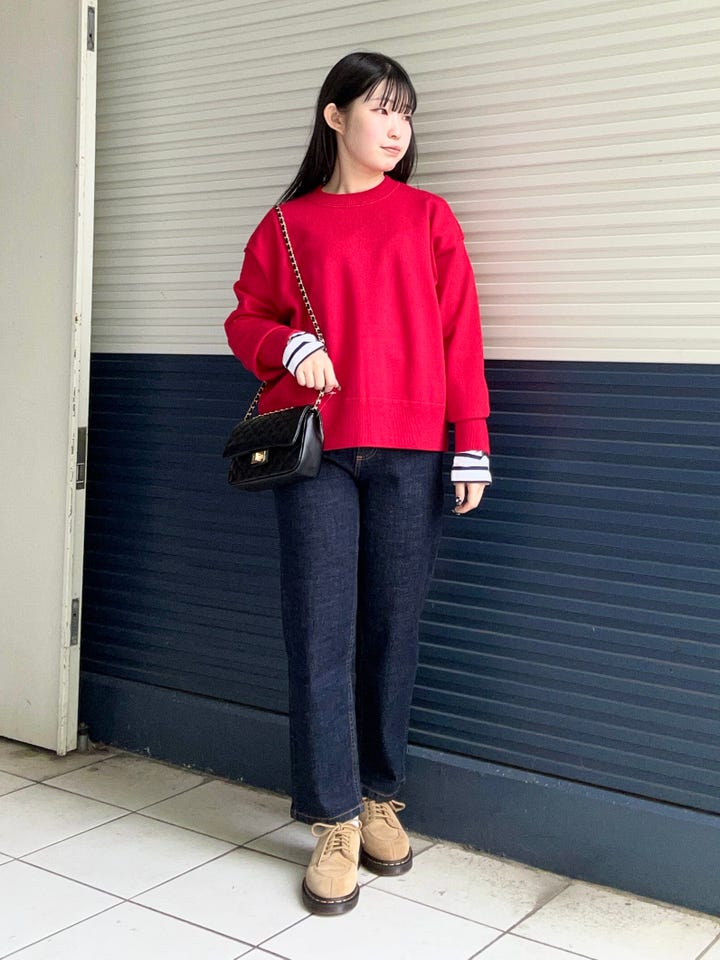 スウェットのように楽に着用できるニットです。もちもちした生地感で着心地◎です!
