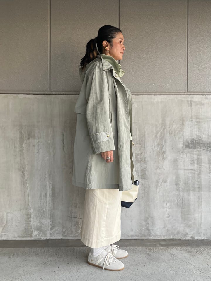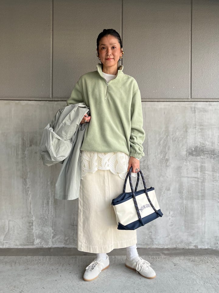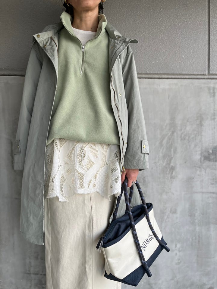 雰囲気あるグリーンカラーが春の装いを引き立てます。