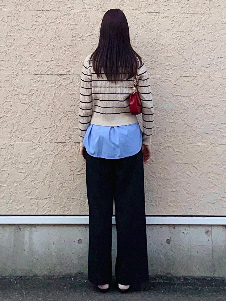 ウエストは後ろがゴムになっているので楽に着用できる。ワイドシルエットでゆったりめのサイズ感。