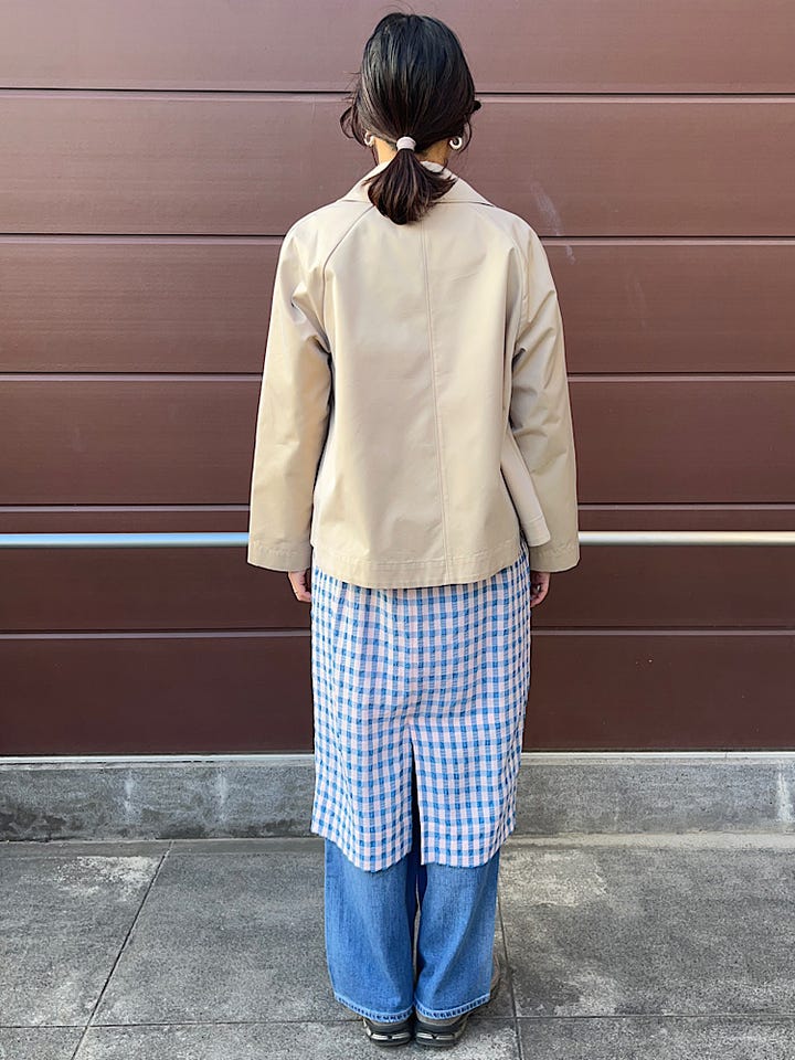 素材感・着心地:ショート丈でハリ感があるアイテムです。ON・OFF様々なシーンで着用いただけます。